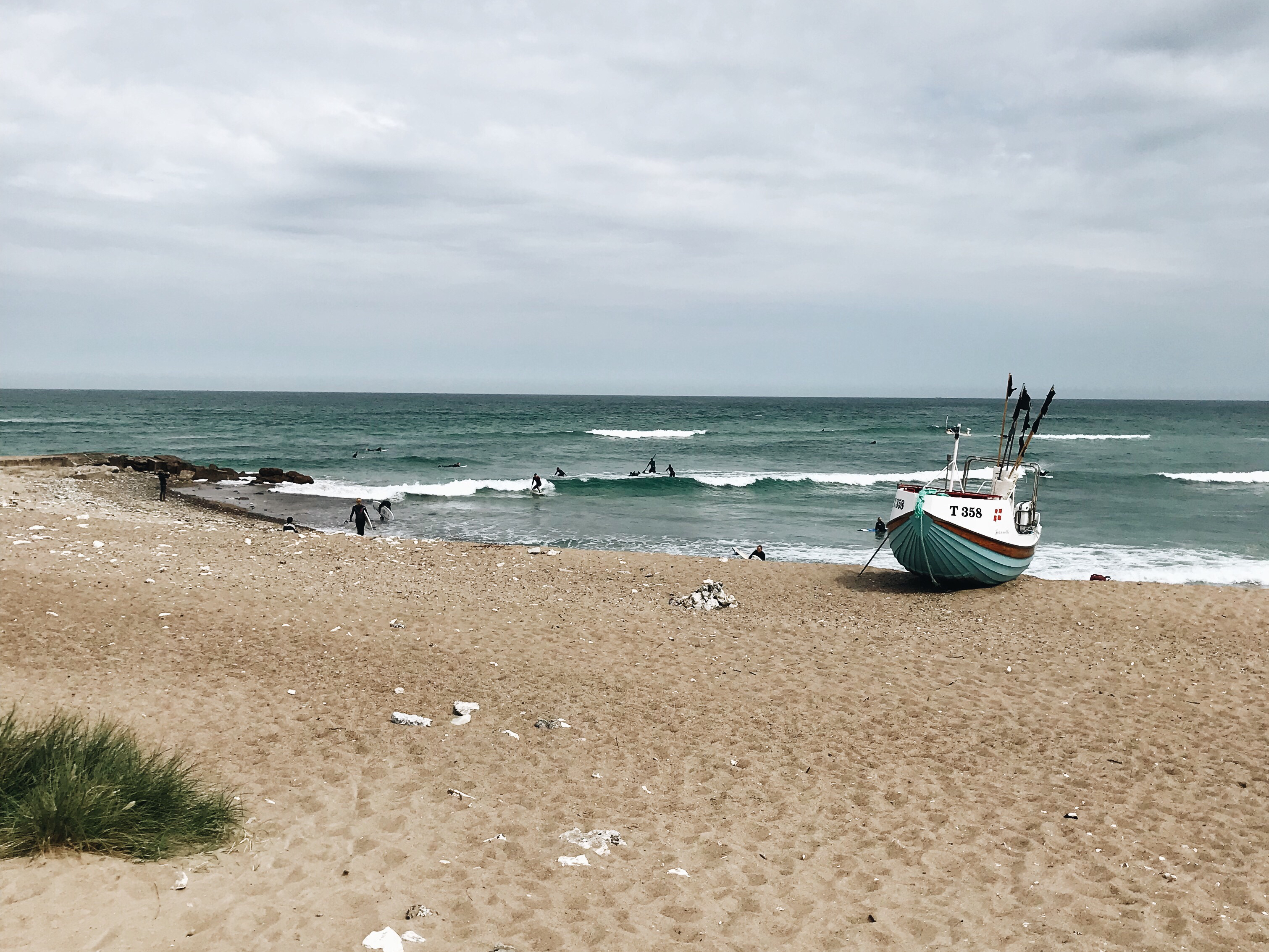 From there, we began making our way down Jutland’s rugged west coast, with a stop at the iconic Rubjerg Knude Fyr. This lighthouse, famously relocated inland in 2019 due to coastal erosion, stands proudly among the shifting dunes, offering spectacular views over the North Sea. Further south, we drove through Thy National Park, Denmark’s first national park, and were amazed by its vast heathlands, windswept dunes, and serene lakes. Next, we stopped in Klitmøller, known as Cold Hawaii. Even if you’re not a surfer, it’s worth visiting for the laid-back coastal vibe and to watch the surfers catching waves. Continuing south, we reached the fishing town of Hvide Sande, known for its bustling fish markets and scenic harbor, where we spent our second night on the road.
