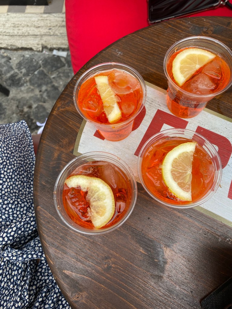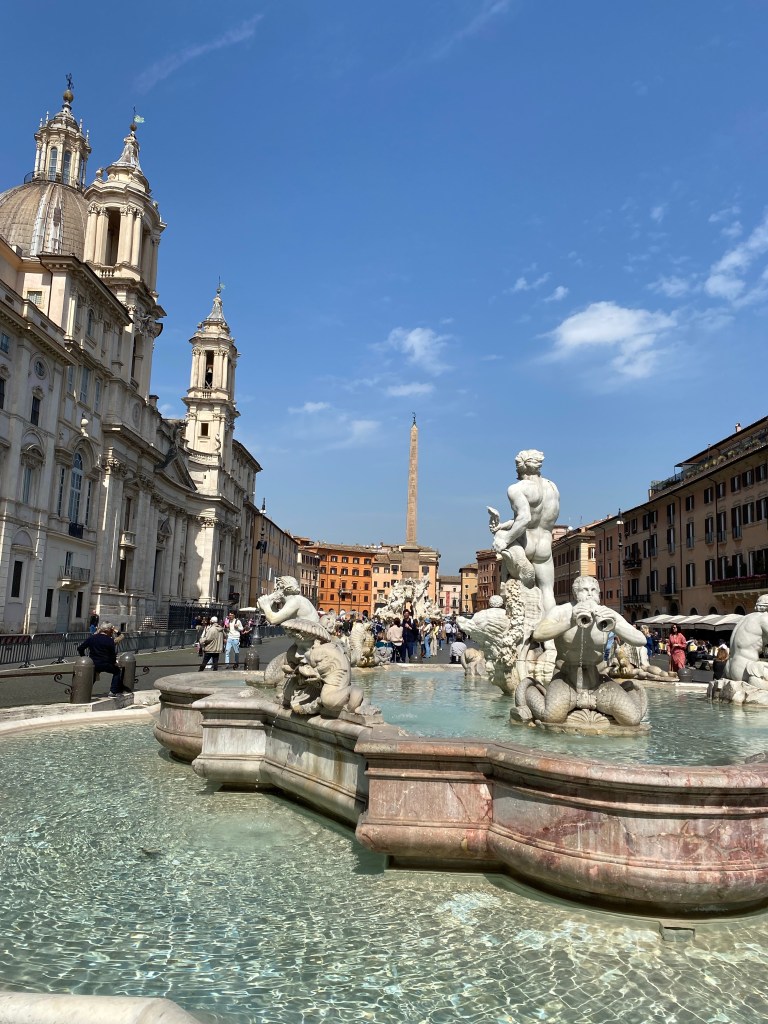 After a delicious breakfast at the hotel, we kicked off our first full day with a visit to St. Peter’s Basilica. From there, we wandered toward the city center and soon found ourselves sipping our first Spritz of the day in the sun at Piazza Navona. Strolling through Rome’s historic streets, we admired the Pantheon, grabbed gelato at Giolitti, one of Rome’s oldest gelaterias, and tossed coins into the Fontana di Trevi, ticking off some of Rome’s most famous landmarks along the way.