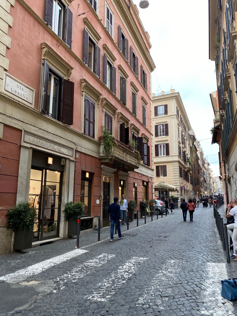 Later in the afternoon, we explored the Monti neighborhood, particularly Via Urbana, known for its vintage shops, boutiques, and cozy cafés. At the nearby Mercato Centrale Roma, you can also grab Rome’s famous street food pocket at Il Trapizzino. Although we had hoped to visit Oro Bistrot for rooftop drinks with a view, after another packed day, we were simply ready to head back and rest at the hotel.