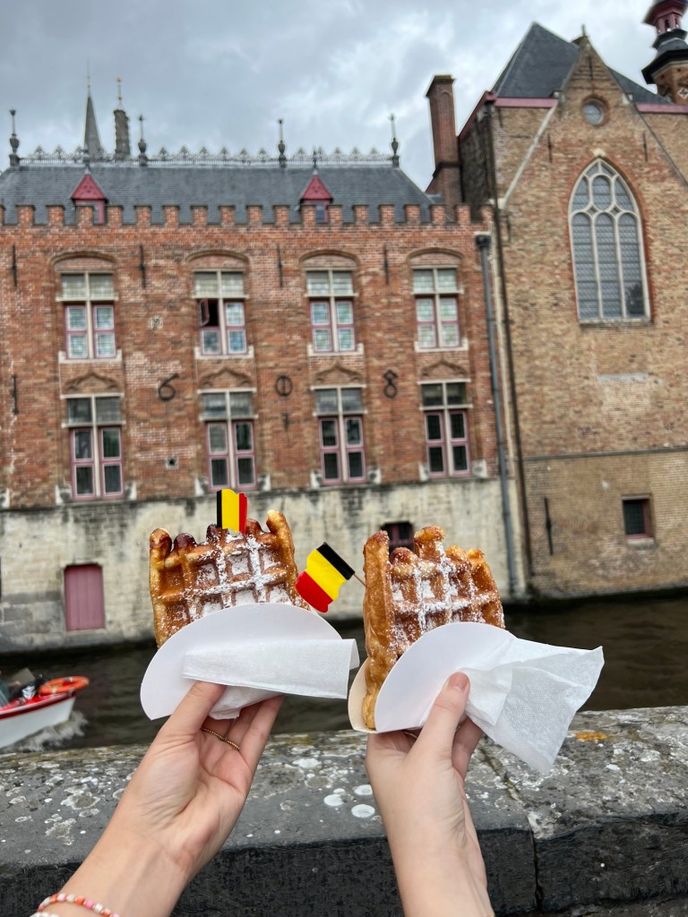 The following day, we took the train to Bruges, which was probably my favourite city in Belgium. Not only because I had the best Belgian waffle there, but because having one in your hand while wandering the enchanting cobbled streets of this medieval town is double the fun. Climb the iconic Belfry for panoramic views over the red rooftops and winding canals or explore the historic buildings, arched bridges, and quiet courtyards of Bruges along on a canal boat tour.
