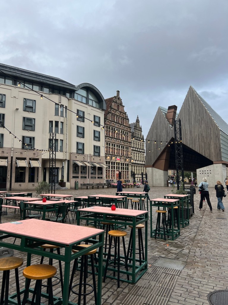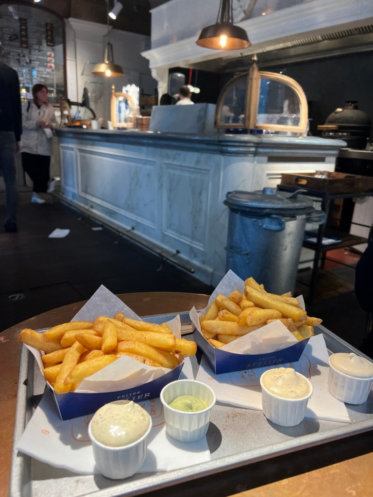 Once we made it to Ghent, we really stepped back in time with a visit at the medieval Gravensteen Castle in the heart of the city. And despite the rainy weather, we strolled along the scenic Graslei and Korenlei quays, lined with historic guild houses and bustling cafés and treated ourselves afterwards with some original Belgian fries at Frites Atelier. Or how they would say in Belgian: a so-called frituur.